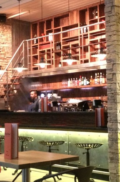 A bit like London’s Burger & Lobster the concept at Bun & Bowl is very simple. You can have a burger, or a bowl of shrimp (although I would refer to them as King Prawns). There are deviations on what kind of burger you have, and what sauce you have with your shrimp, but that’s your lot other than three salads. We ordered pricey pints of Budweiser (£4.70) while we made our selection from the leather bound menu. There is an attractive cocktail bar, which has a list of classic cocktails which seem to be reasonably priced.