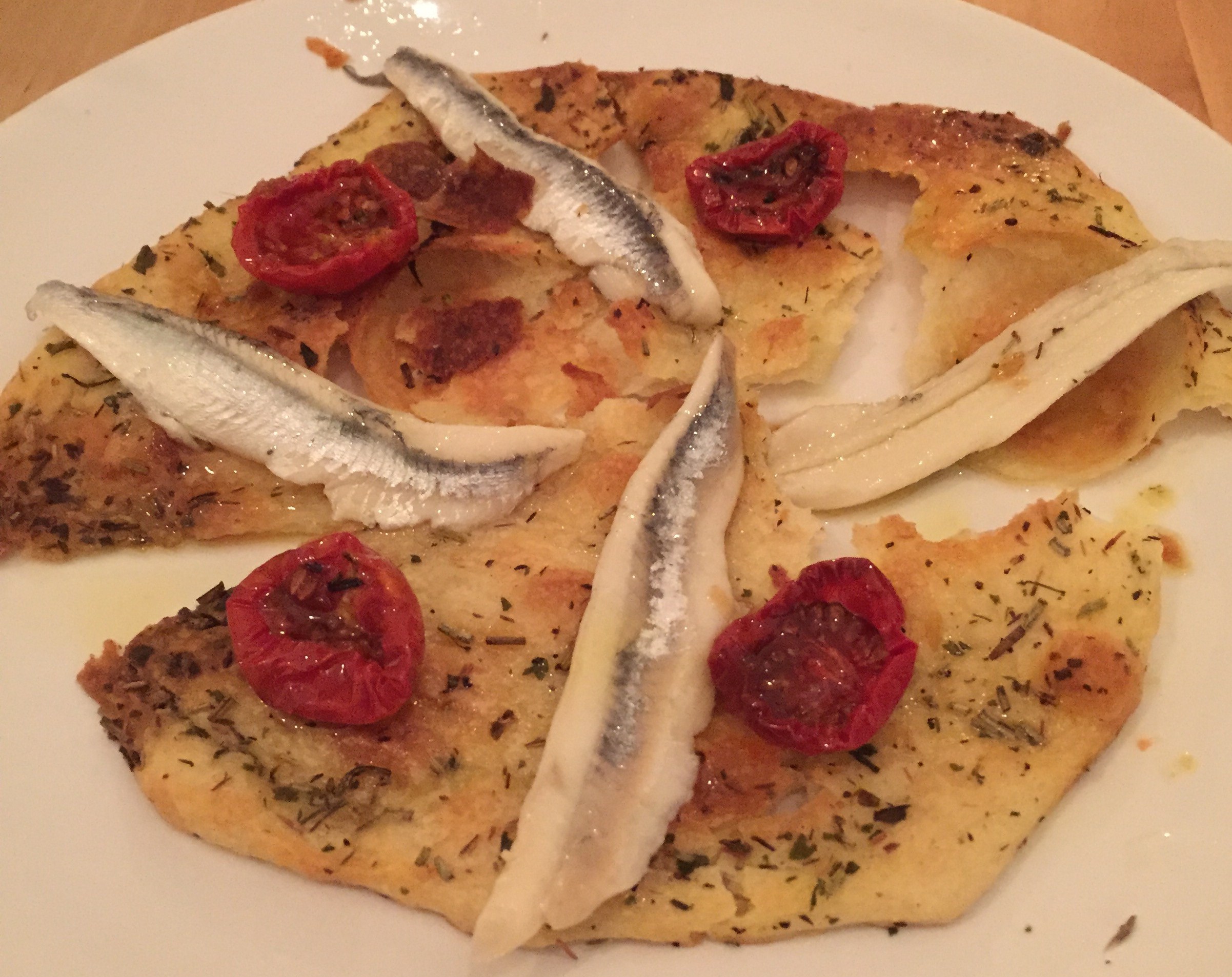 delivered to the table as they’re ready. As we were a hungry eight, we decided to order the whole menu. Twice. That may sound excessive (it was) but some of the plates are quite small and inexpensive, and you can definitely have a good value feed here. I won’t go over every morsel but there were some really lovely dishes: corn fed chicken with mojo sauce; grilled squid and garlic mayo; acidic anchovies with sweet part dried cherry tomatoes; goats cheese and butter-soft beetroot; rare steak with onion; fig with ham and honey; tortilla Espanola.