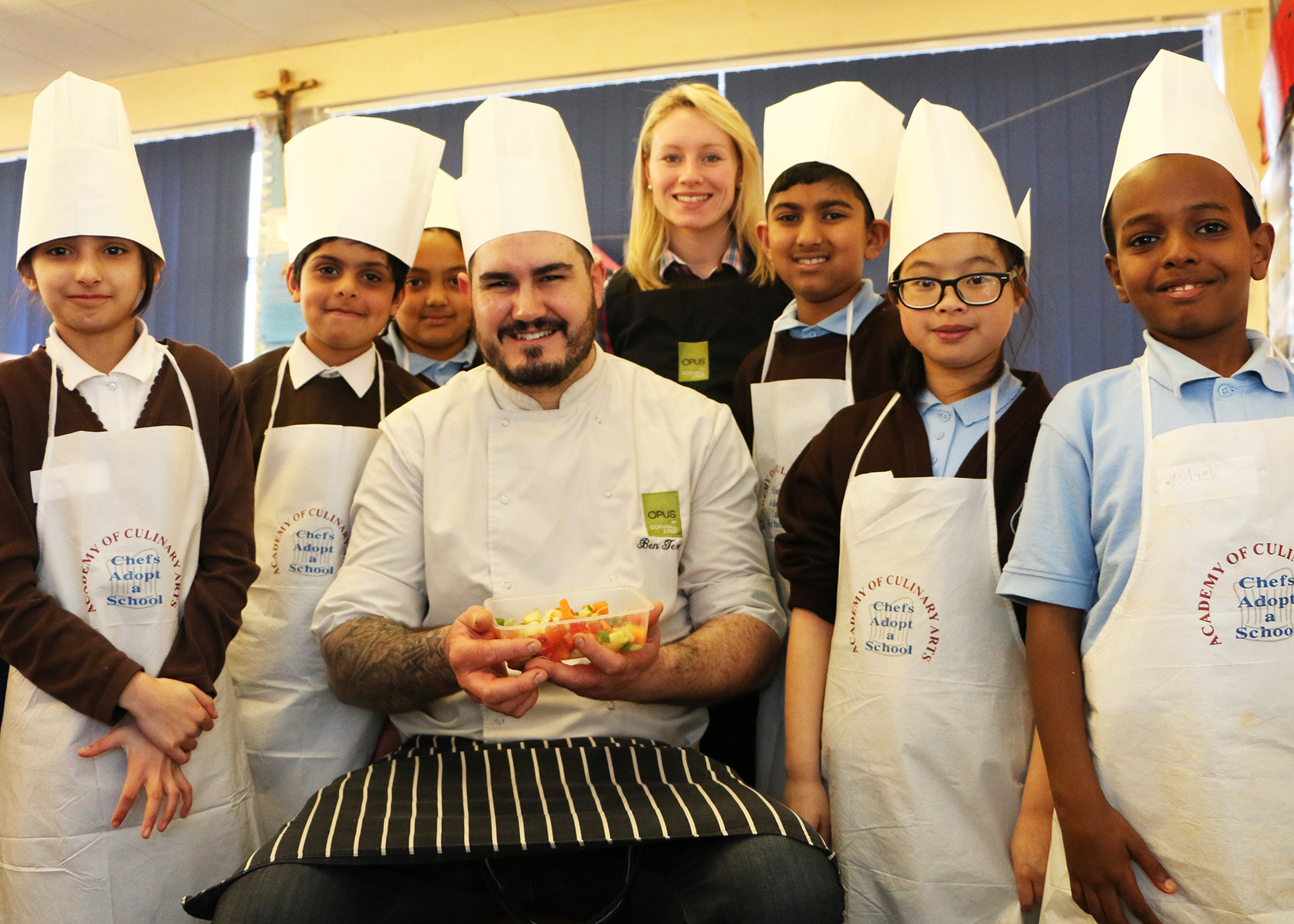 OPUS at St Clare’s Primary School with Executive Chef Ben Ternent and Sustainability Champion Sarah Hepburn (1)